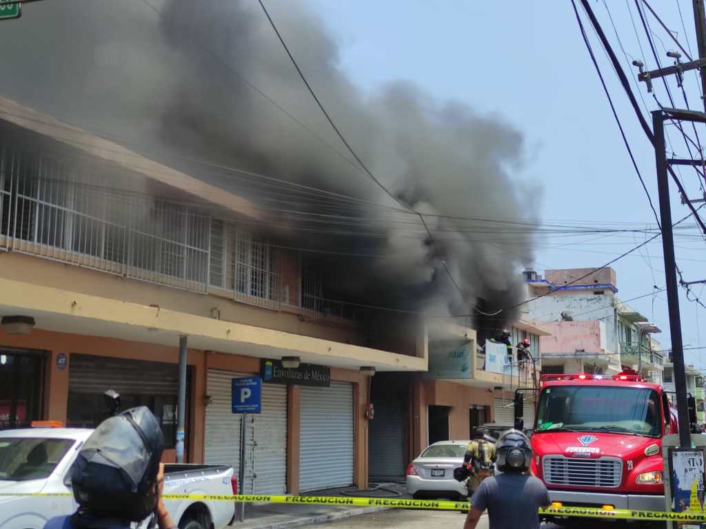 Veracruz, Ver.- Gran alerta se suscitó la tarde de este lunes tras el incendio de un comercio de plásticos ubicada en las calles Francisco Canal y Miguel Hidalgo, del centro de la ciudad de Veracruz.