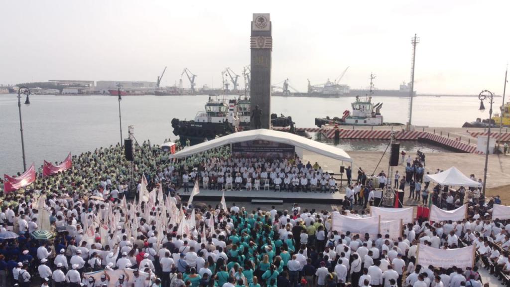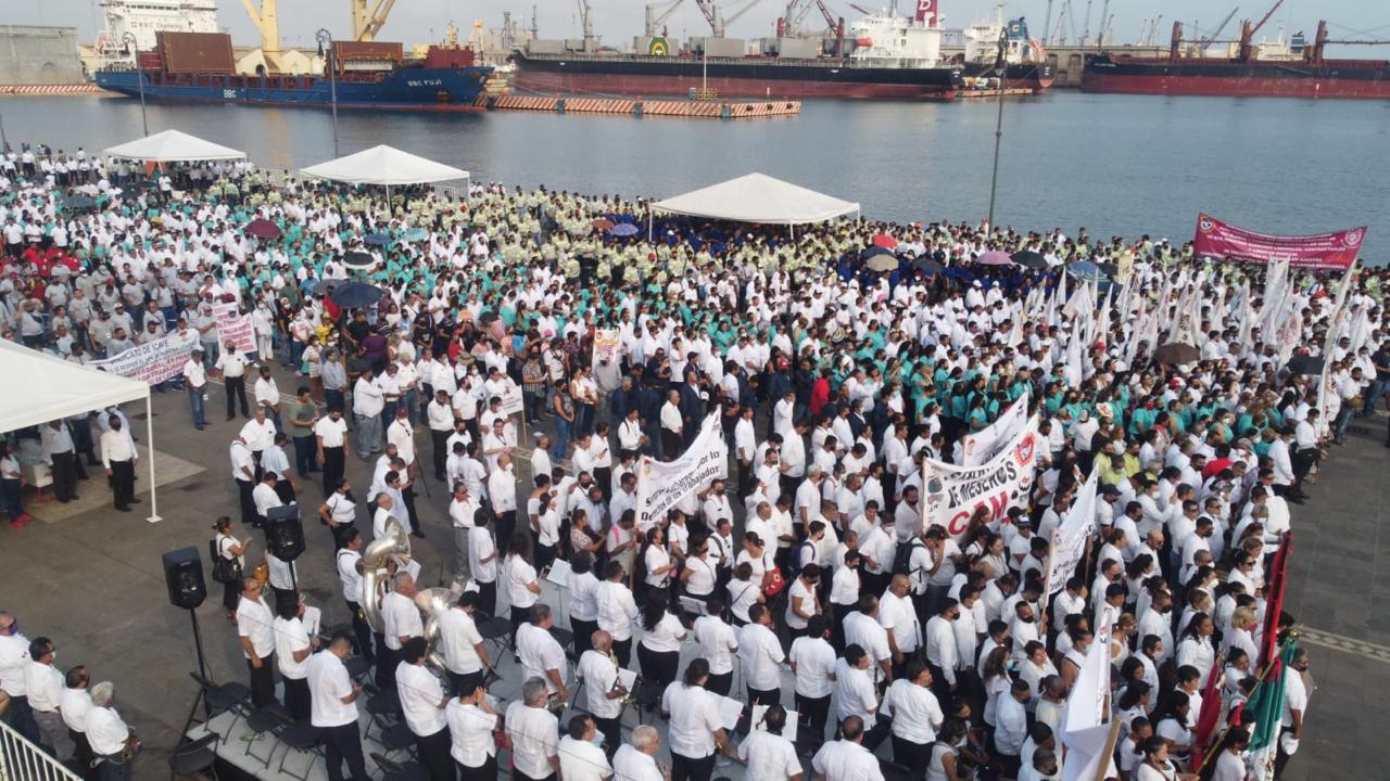 “Agradecemos a la Alcaldesa por ser una excelente anfitriona y tener ese toque fino de sensibilidad y empatía con los trabajadores; muchas gracias al Ayuntamiento de Veracruz por darnos estas facilidades que nunca se nos habían dado. Los aquí presentes son parte de la historia de este acto inédito en el Puerto de Veracruz de una sola concentración”, afirmó.