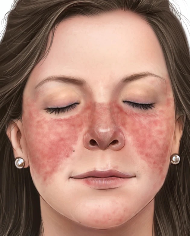 El signo más distintivo de este padecimiento es una erupción en el rostro que asemeja una mariposa