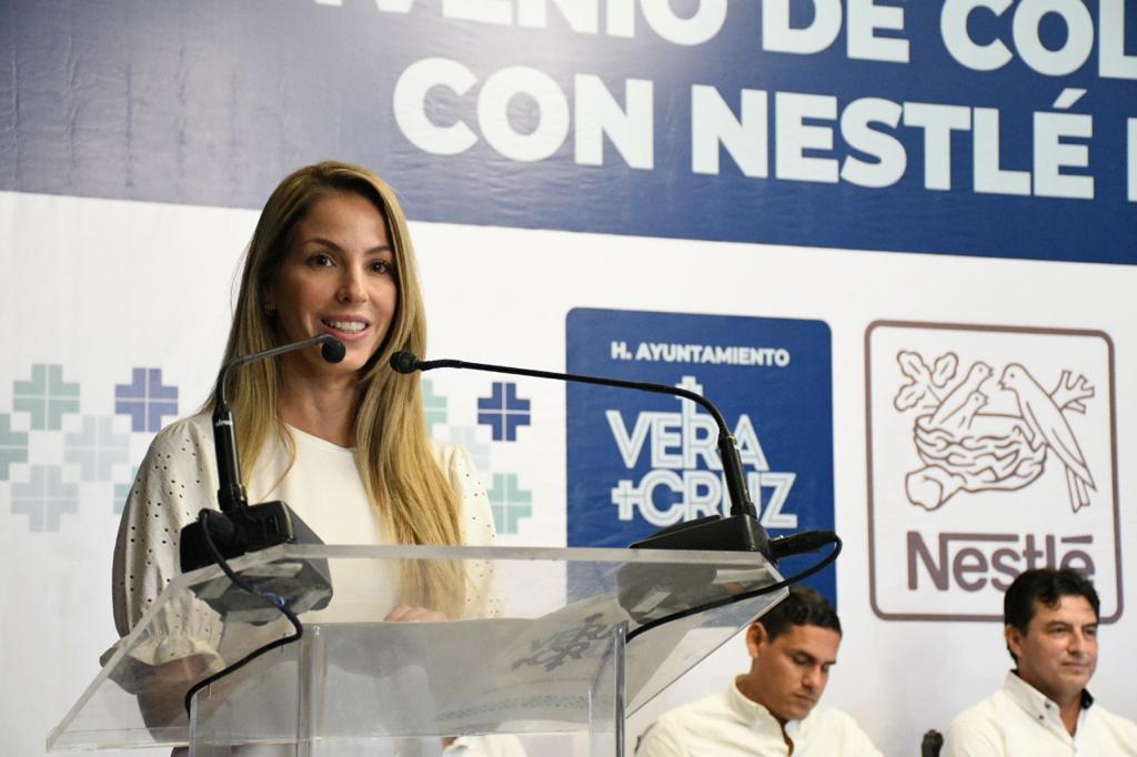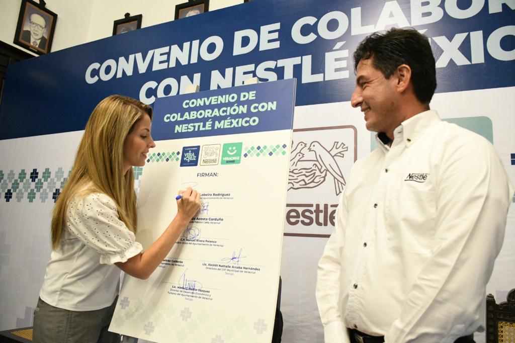 Al realizar la firma de un convenio de colaboración con Nestlé México, la Alcaldesa destacó que es la primera vez que Nestlé hace un convenio con un gobierno a nivel nacional y escogieron precisamente a Veracruz, lo que es una muestra de que hay total confianza en las autoridades municipales y en el gran potencial económico y social de Veracruz.