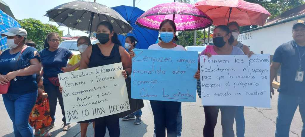 Los manifestantes solicitaron también el apoyo de la Secretaría de Bienestar para que a los pequeños se les adhiera al pago de alguna becas, pues por falta de recursos, muchos de ellos han tenido que abandonar los estudios; igualmente pidieron que su escuela se integre al programa «La Escuela es Nuestra», con la finalidad de obtener recursos Federal para la mejora general de la institución.