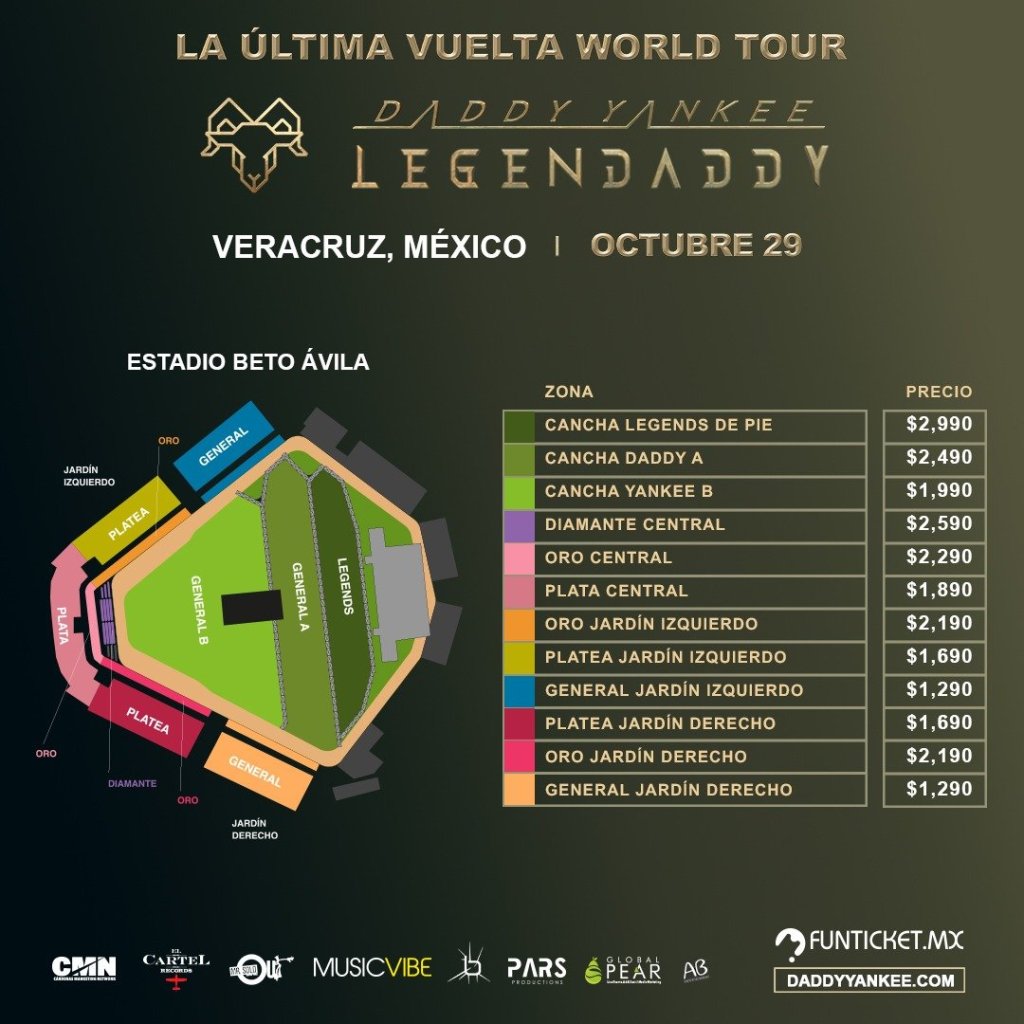 Recordemos que Daddy Yankee, Ícono de la música mundial conocido como el «Rey del Reggaeton», llegará a Veracruz el 29 de octubre con su «La Última Vuelta World Tour» en el estadio de beisbol Beto Ávila.
