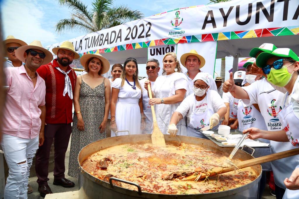 Alvarado, Ver.- Tras dos años de ausencia debido a la pandemia, se realizó el tradicional Arroz a la Tumbada, cerrando los festejos de Las Cruces de Mayo en Alvarado.