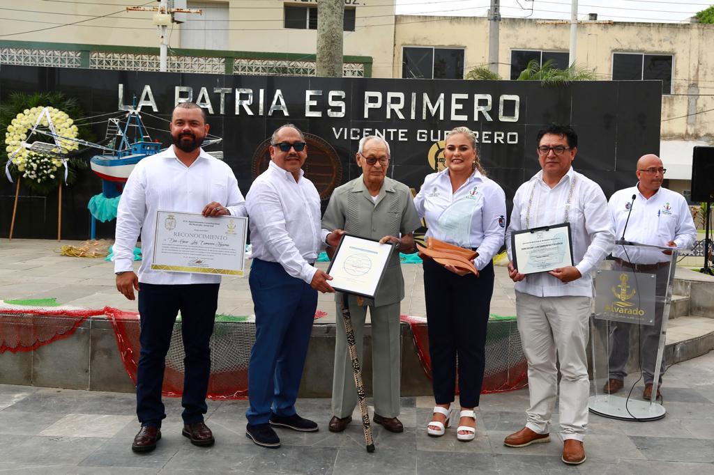 Alvarado, Ver.- Este miércoles por la tarde en el festejo por el «Día de la Marina», se homenajeó en el municipio de Alvarado a, Oscar Camarero Figueroa, constructor de navíos, quién tiene en su haber la realización de la emblemática «Marigalante».