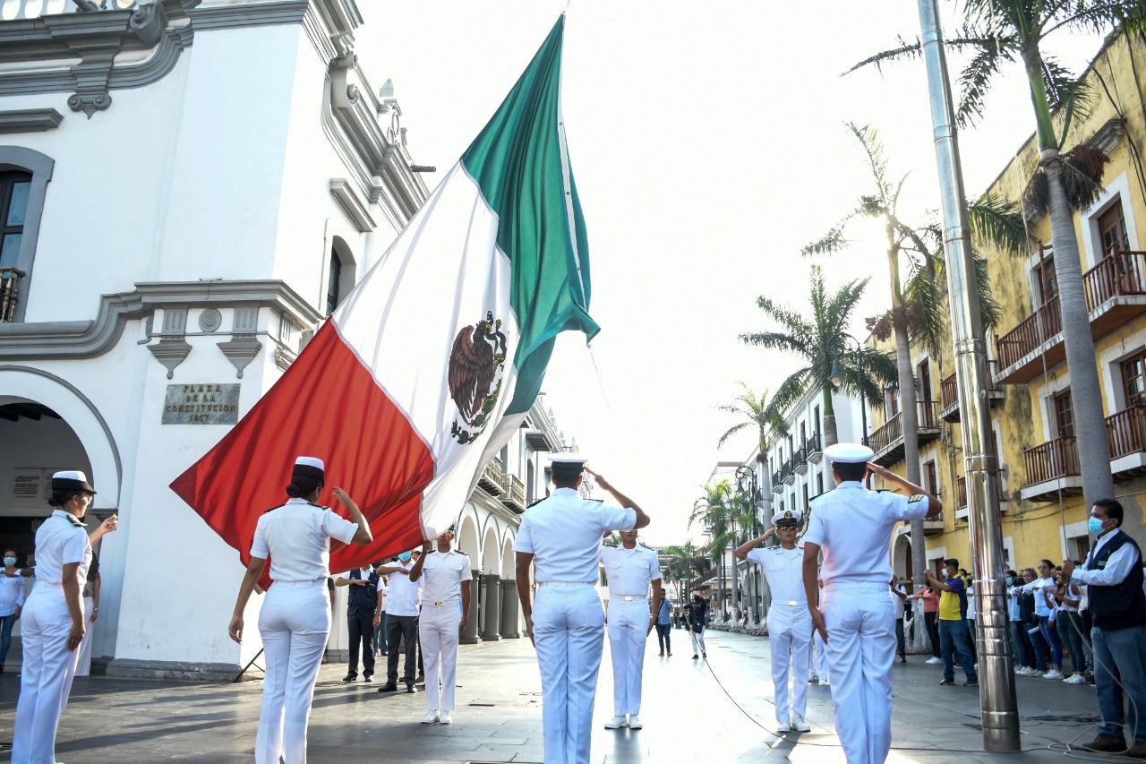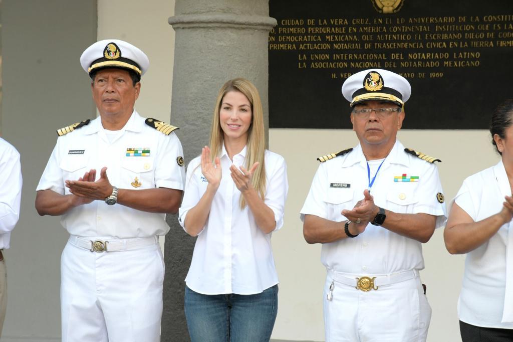 Después de una ausencia de más de dos años por la pandemia del COVID-19, la Escuela Náutica Mercante de Veracruz, acompañó este lunes a la alcaldesa Patricia Lobeira de Yunes durante el acto cívico que se realizó en el Zócalo de la Ciudad.