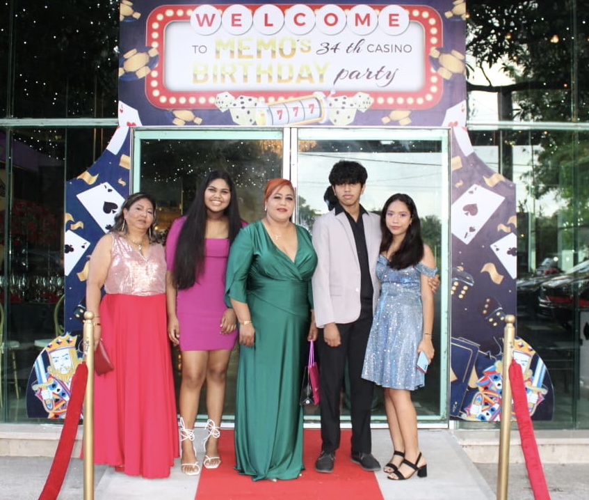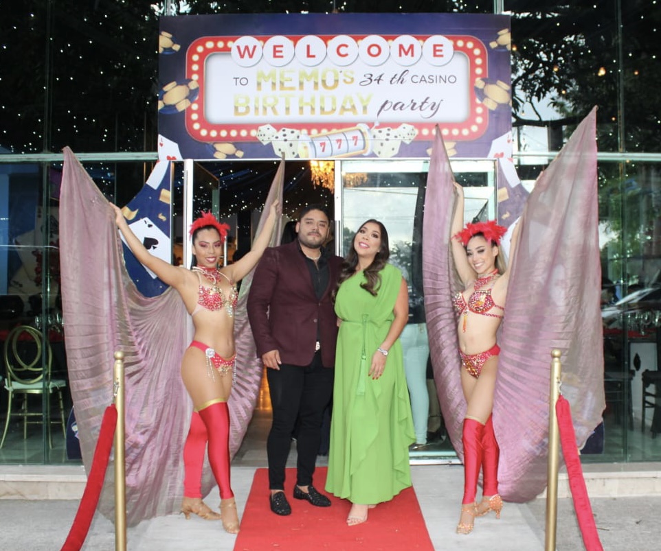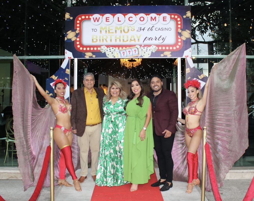 La Fiesta con temática de Casino se llevó a cabo en un salón en Playa de Vacas, en Medellín de Bravo, donde la alfombra roja fue tendida para recibir a todos los invitados y hacerlos sentir cómo en Las Vegas.
