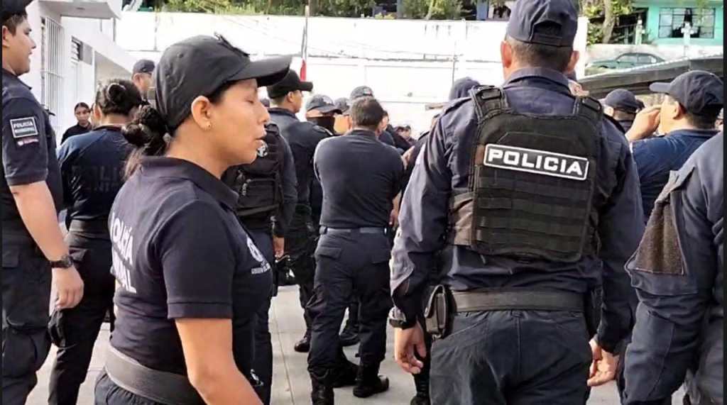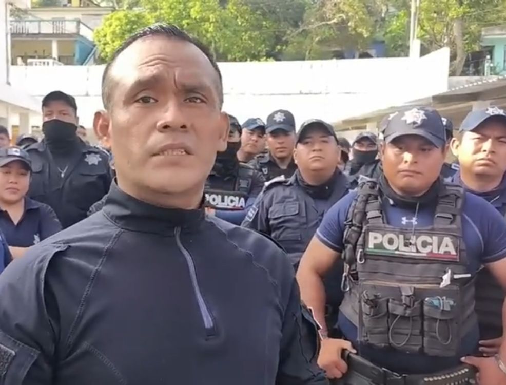Los uniformados daban entrevista a los medios de comunicación y explicaban sus inconformidades, solicitando una audiencia con el alcalde José Manuel Pozos Castro, quién esperan les ayuda a solucionar su situación; cuándo de forma repentina ingreso un comando de la Secretaría de Marina para intentar disuadirlos.