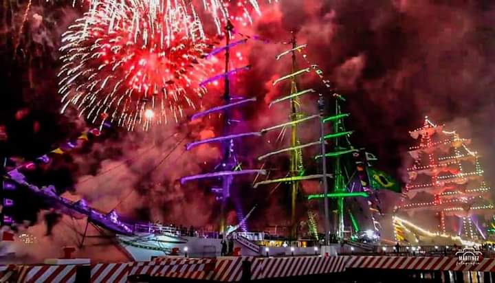 El Festival Velas Latinoamérica 2022 concluyó este martes por la noche, donde el cielo se iluminó con el espectáculo de fuegos artificiales y drones sobre la Macroplaza del Malecón, para despedir a las Armadas de Brasil, Argentina,Uruguay y México, que partirán el miércoles a primera hora.