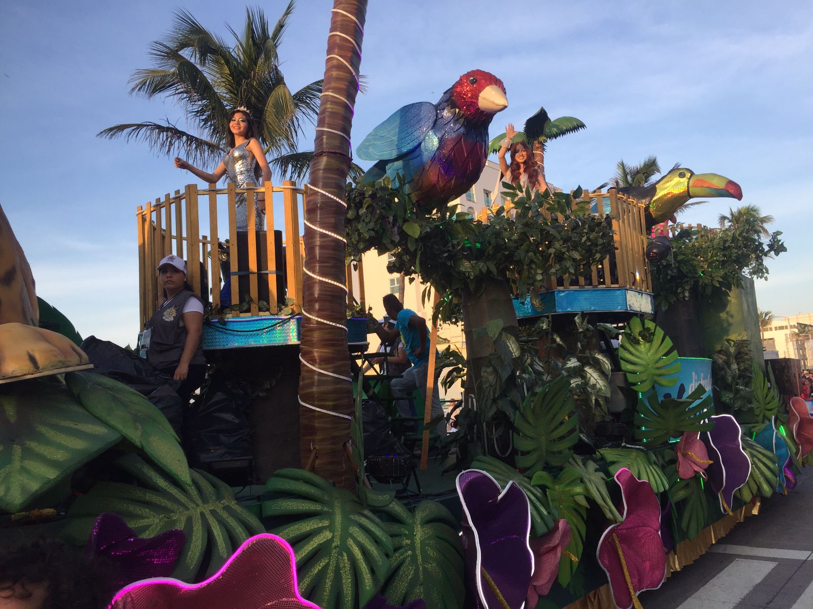 Majestuosas en el carro de las princesas Miriam Carballo «Miimii» ,Mirna Caballero «Chikibaby»,Valeria Rangel «Vale Queen» y Hannia Tuncheu,así como los princesos Emmanuel Sagaón «Cherry», Erubiel Sosa «Erupanda » y Gelacio Solís «Payaso Lacho El cucaracho».