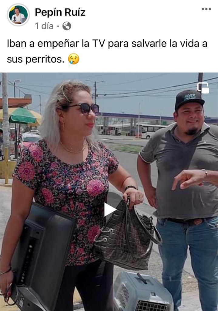 En sus plataformas “Pepín Ruíz” de Tik Tok y Facebook se puede observar como una pareja acude a una casa de empeño para empeñar una pantalla de televisión, ya que los cachorros de la pareja están enfermos y no tienen el dinero para atenderlos.