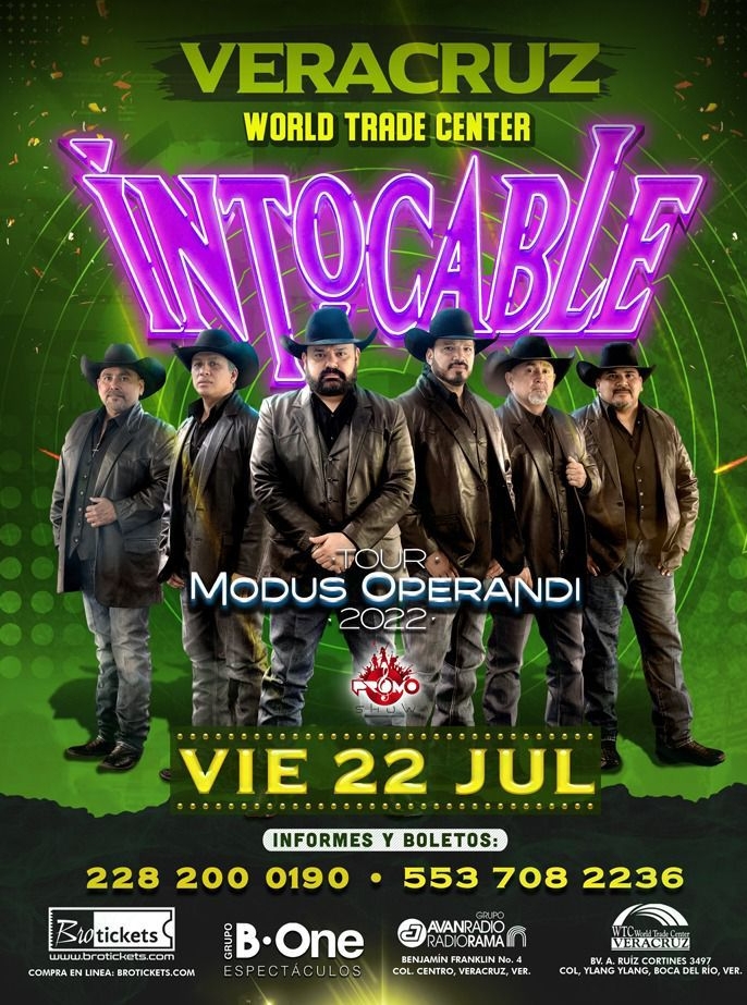 El esperado tour “Modus Operandi 2022” del grupo Intocable llegará por primera vez al WTC Veracruz esté viernes 22 de julio.