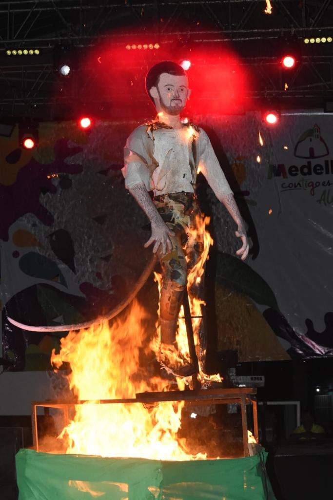 Medellín de Bravo, Ver.- La noche de este jueves se realizó la tradicional Quema del Mal Humor, para dar inicio a las festividades de la Feria del Mango 2022, donde la figura a la que se le prendió fuego, fue la del ex alcalde panista, Hipólito Deschamps Espino Barros