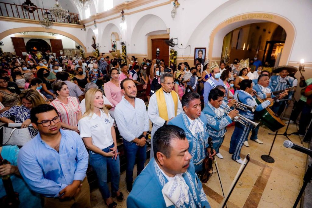 Más de 300 feligreses escoltaron a la adorada imagen, quienes al llegar entonaron con el Mariachi Veracruz “Las Mañanitas” y “Hermoso Cariño”.