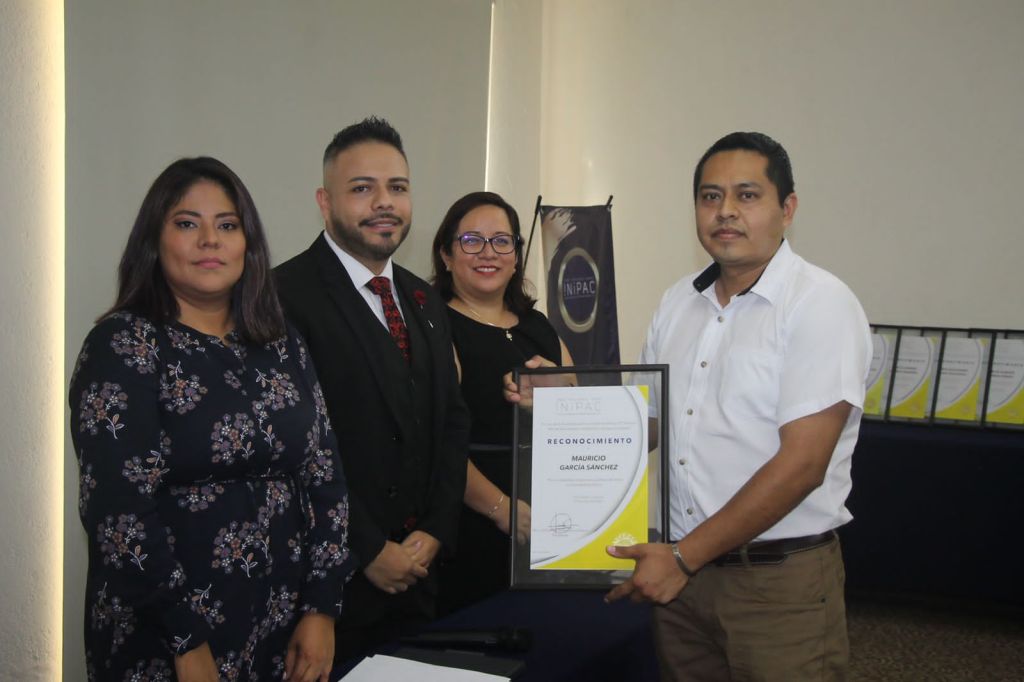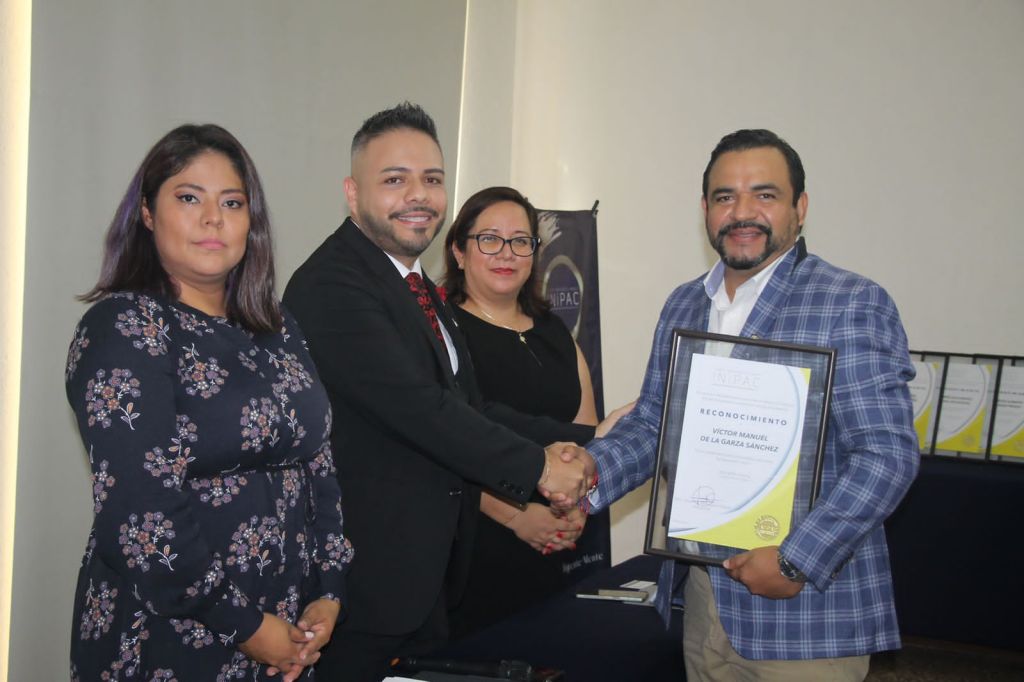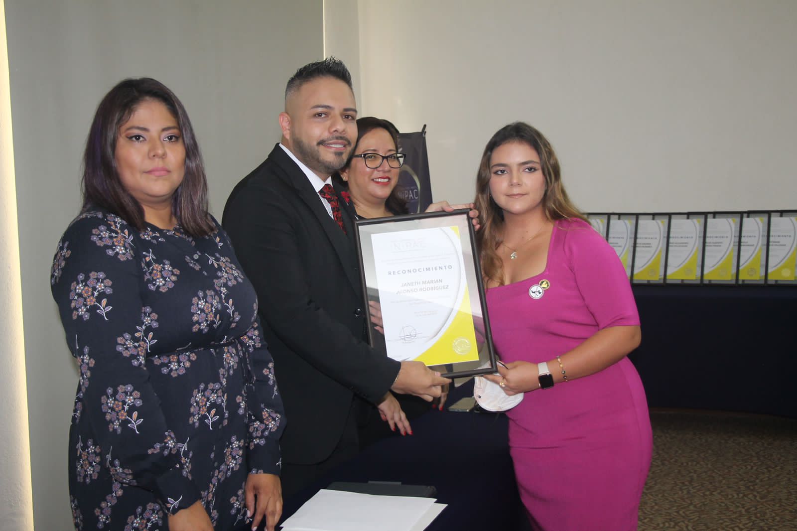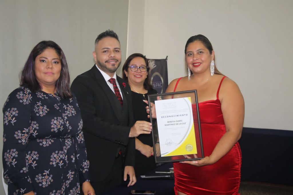 El Mtro. Oldair Luna, acompañado de la Lic. Zenyace Castillo y de la CPC Karina Morales, entregaron los reconocimientos a las y los galardónanos.