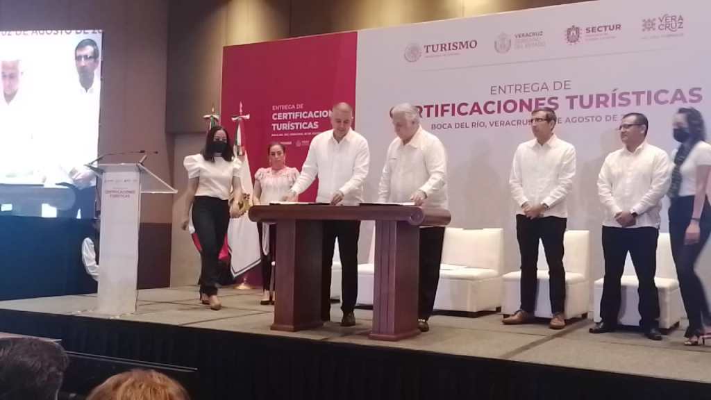 Este martes en el World Trade Center de Boca del Río, el secretario de Turismo Federal entregó, 41 distintivo punto limpio, 28 constancias de clasificación hotelera, 8 distintivo moderniza ecoturístico, 4 de moderniza básico, 6 sello cerca de China y 19 credenciales de guía de turistas.