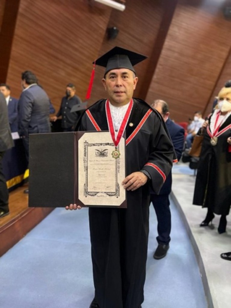 De manos del presidente del organismo Juan Carlos Sánchez Magallón, el abogado penalista con 33 años de experiencia recibió la toga y el documento que lo acredita como integrante de la Legión de Honor Nacional de México.