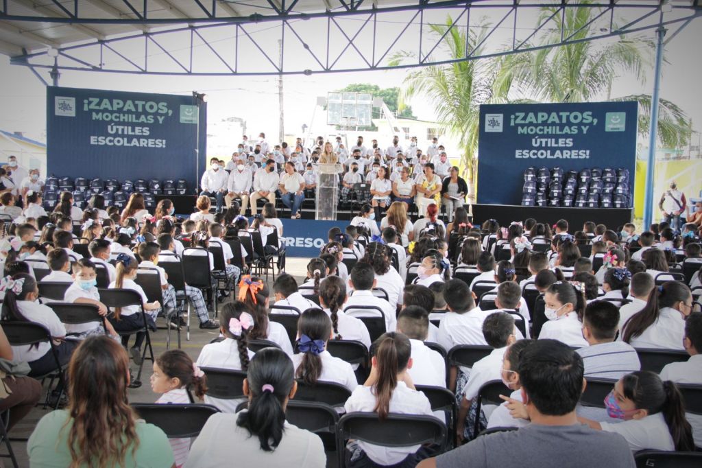 *Veracruz, Ver., 29 de agosto de 2022.-* La alcaldesa Patricia Lobeira de Yunes realiza la entrega de zapatos, mochilas y útiles escolares para todos los niños de primarias públicas de Veracruz, lo que representa un apoyo histórico para las familias veracruzanas ante la difícil situación económica generada por la inflación.