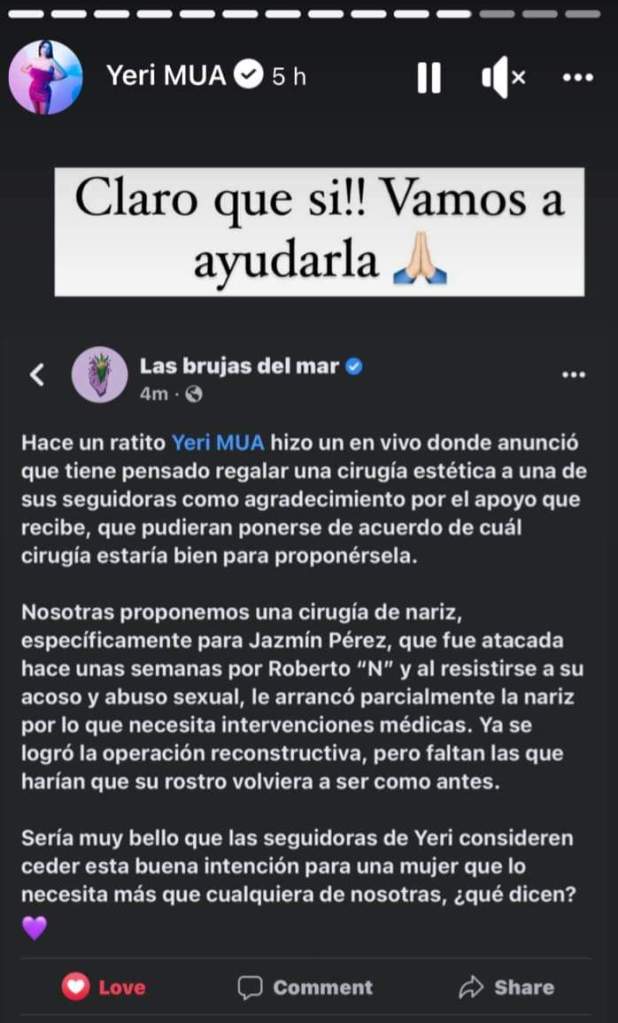 «Sería muy bello que las seguidoras de Yeri consideren ceder está buena intención para una mujer que lo necesita más de cualquiera de nosotras, ¿que dicen?».