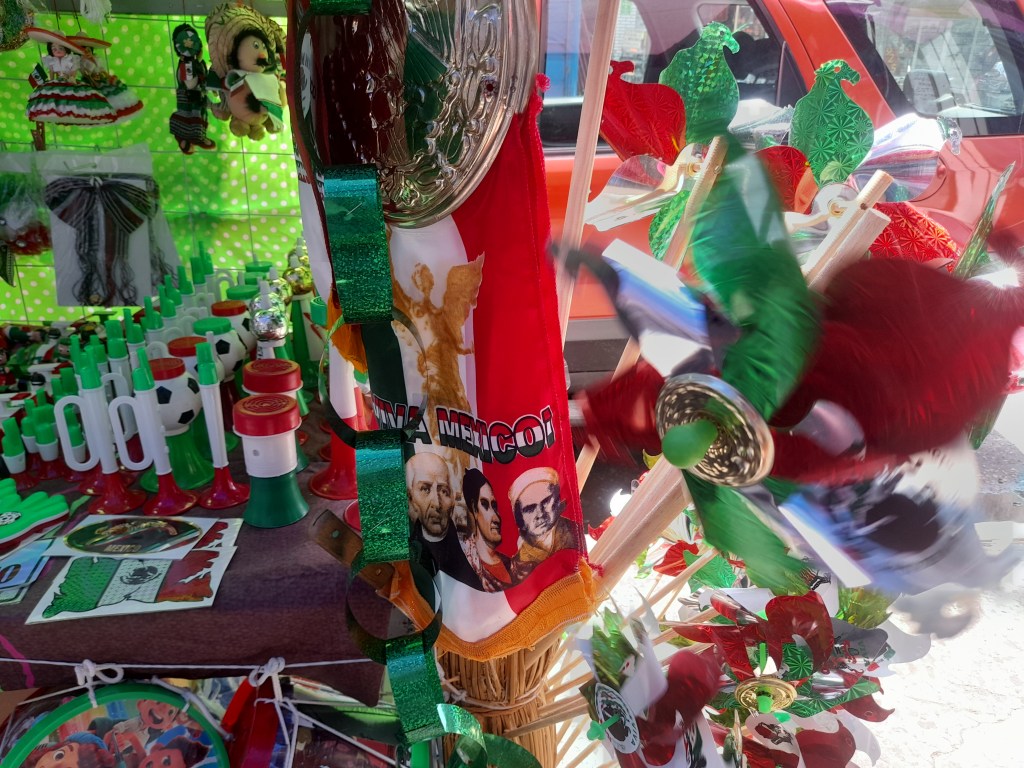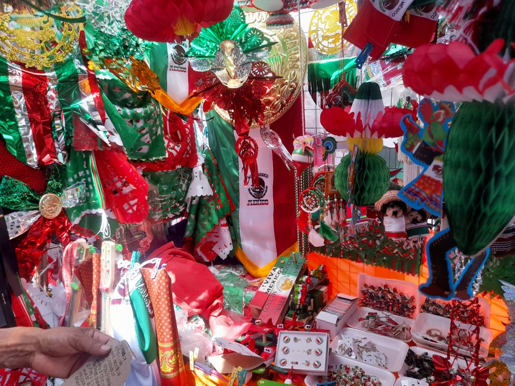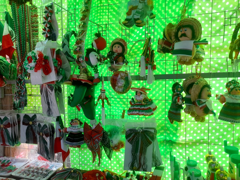 Los puestos ambulantes de artículos patrios lucen repletos de rehiletes, medallones grandes, campanas, faroles, chiles, sombreros, guitarras, aretes, prendedores y guitarras,aunque en el 2021 ya hubo venta, este años los vendedores de estos productos esperan mejores resultados económicos