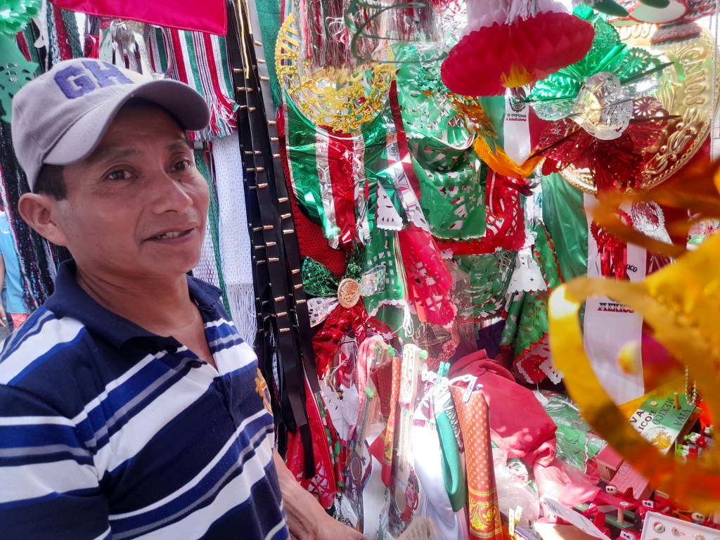 Por su parte Juana Ines que también vende artículos patrios y que se encuentra ubicada en la esquina de Cortés e Hidalgo ,dijo que aunque algunos productos han subido de precio, esperan mejores ventas y ganancias.