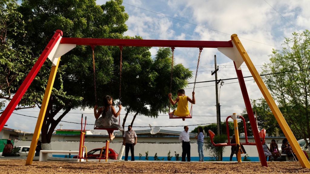 Desde ya, niñas y niños pueden utilizar con total seguridad el área de juegos, pues se recuperaron los columpios y resbaladillas, dotándoles de pintura anticorrosiva y esmaltes especiales para que duren en mejor estado por mayor tiempo.