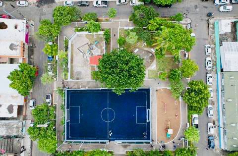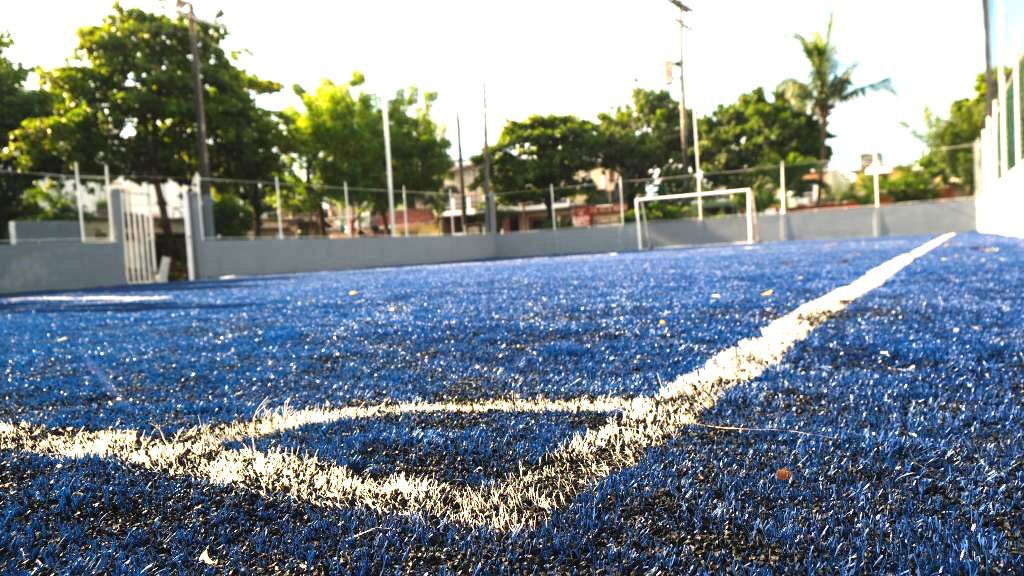 La cancha de futbol está totalmente renovada con pasto sintético, gracias a la donación de la iniciativa privada; se remplazó 160 metros cuadrados de malla ciclónica en todo el perímetro de cancha y malla protectora.