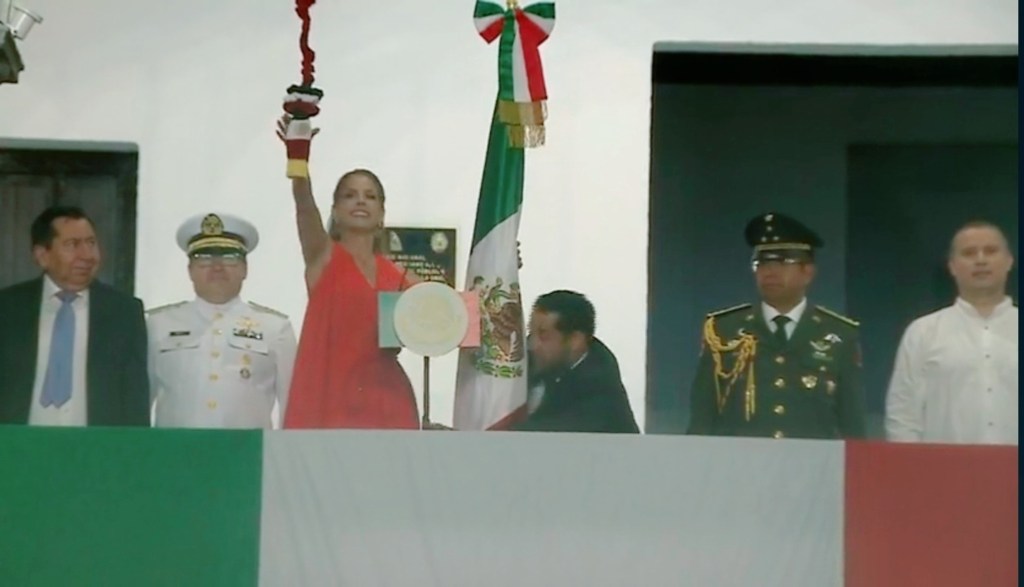 Este magno acto cívico inició a las 22:00 horas desde el balcón del Palacio Municipal con la entrega de la bandera a la alcaldesa Patricia Lobeira de Yunes, por parte del Síndico único ,misma que entrego a la munícipe la Escolta del Ejército Mexicano.