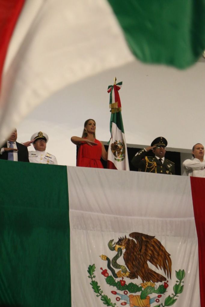 En el recinto oficial, la Alcaldesa Patricia Lobeira de Yunes, recibió el Lábaro Patrio y se dirigió hacia el balcón central de Palacio para, en punto de las 23:00 horas, realizar el tradicional Grito de Independencia.