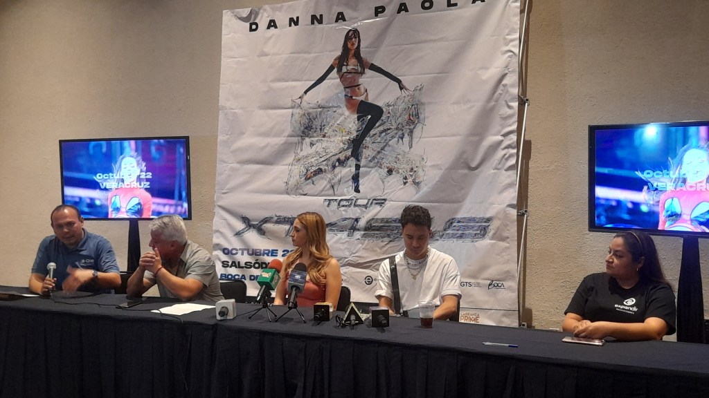 Presidieron la conferencia de prensa para confirmar el concierto de Danna Paola en Veracruz: Raúl Rojas, director Operativo de EXPANDIR Producciones; Bernardo Barrios Rodríguez, director general de Grupo B-ONE Espectáculos; Ileana Valenzuela, Vinculación de Expandir Producciones, así como la actriz Marychuy Arámburu y el periodista de Espectáculos Emmanuel Sagaón “Cherry”, quienes presentarán a Danna Paola el día del concierto.