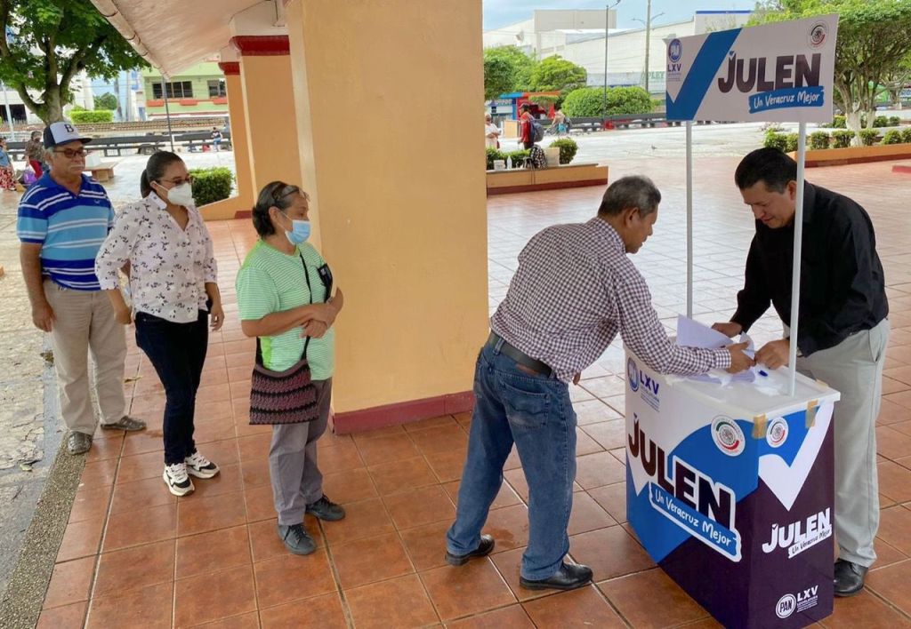 Coatzacoalcos, Ver.- El Senador, Julen Rementería del Puerto, inició en Coatzacoalcos la recolección de firmas ciudadanas para que el Gobierno Federal acuerde con la CFE una tarifa menor, así como la condonación de adeudos existentes en los recibos de luz de todas las familias de la entidad.