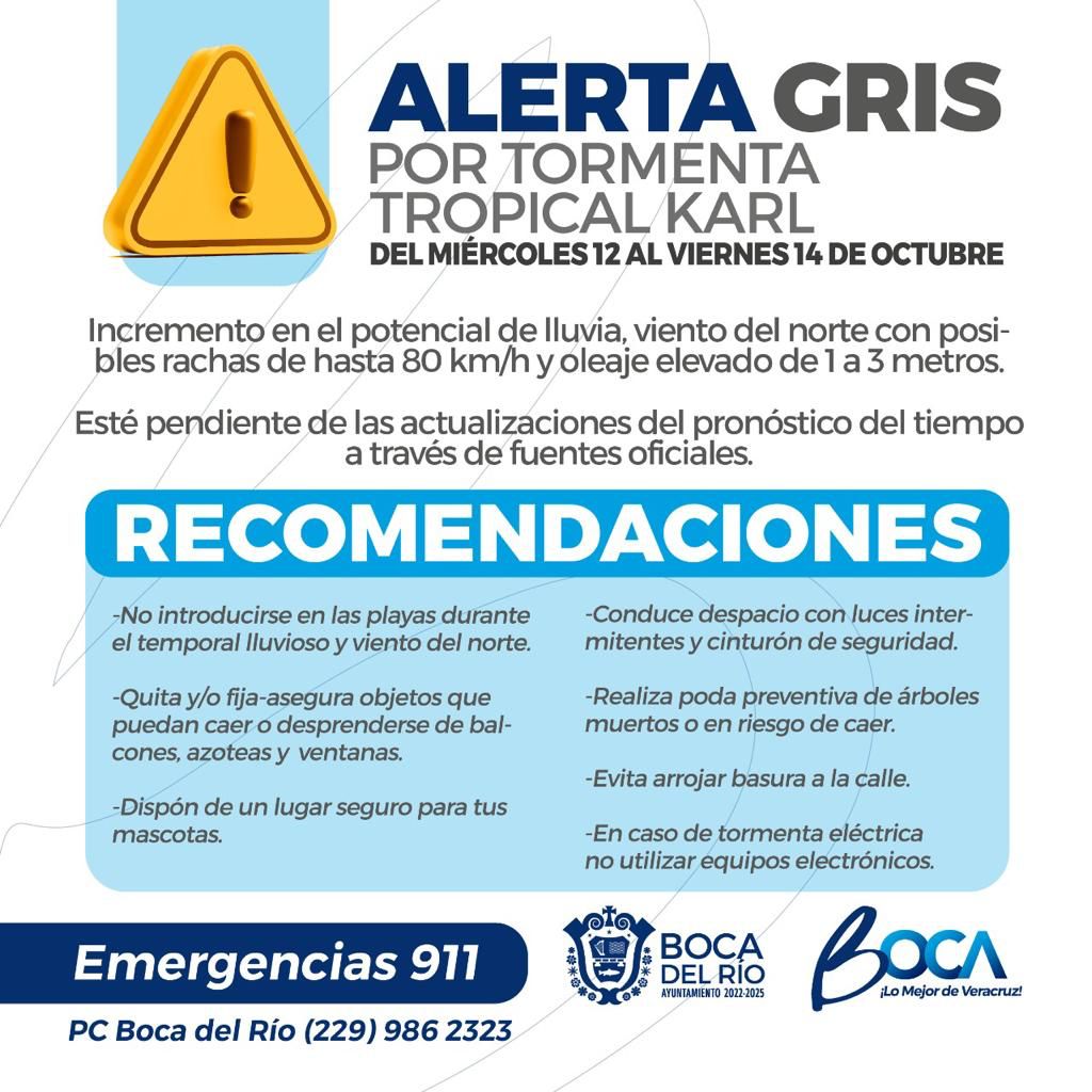 La dirección municipal de Protección Civil de Boca del Río determinó replicar la Alerta Gris emitida por la Secretaría Estatal de la misma área para el resto de la semana.