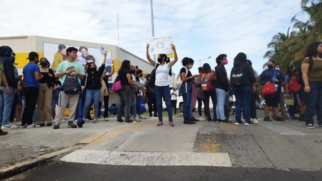 Boca del Río, Ver.- Estudiantes de la Universidad Veracruzana (UV) campus Mocambo, ubicada en el municipio de Boca del Río, bloquearon la avenida Juan Pablo II en apoyo a las protestas iniciadas en la Facultad de Humanidades de la ciudad de Xalapa, por presuntos casos de acoso sexual.