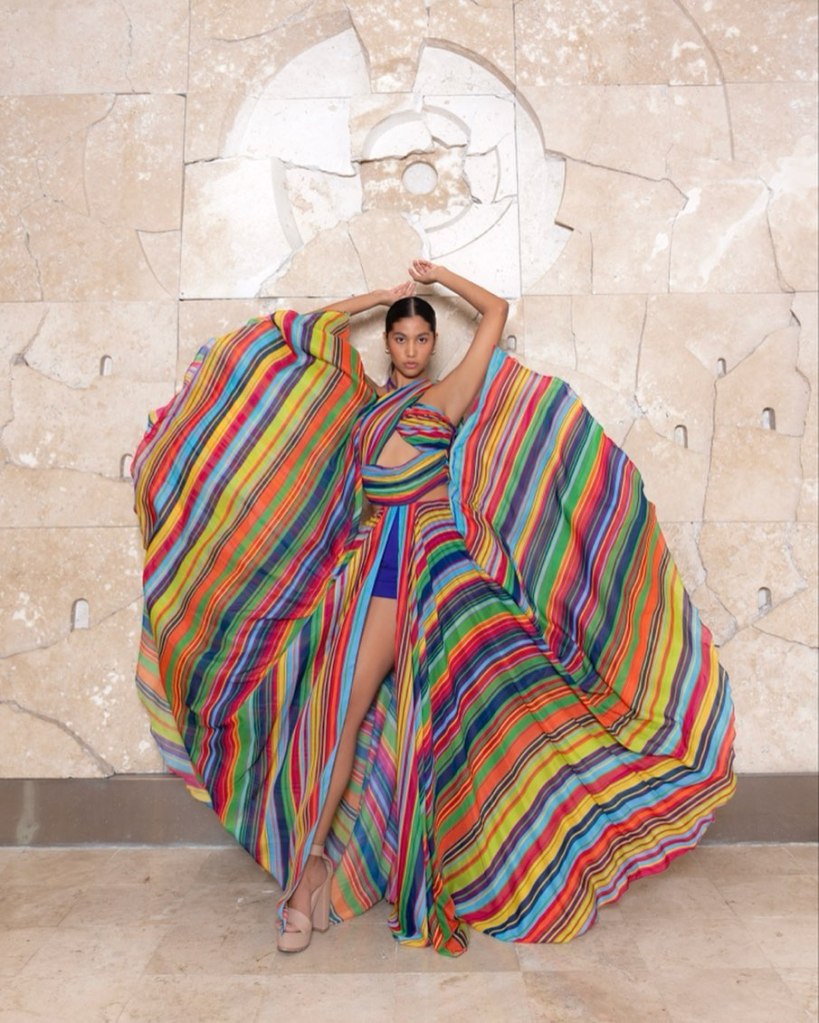VIANET COVARRUBIAS: Su colección Resort 2022 ATIPICO es una celebración a los orígenes de la indumentaria veracruzana, fusionando la arte nostálgico de Cuba y la pasión elegante del flamenco; representados por la neutralidad de los tonos monocromáticos, la energía del carmín y los brillos de los atardeceres del trópico.