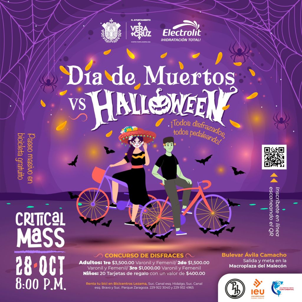 Veracruz, Ver.- Una bolsa de 20 mil pesos será la que se reparta en el Critical Mass de «Día de Muertos», mismo que se llevará a cabo el próximo viernes 28 de octubre a las 20 horas en la Macroplaza del Malecón.