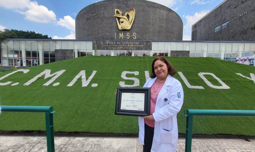 La doctora Patricia Martínez Hernández, médica especialista de Medicina del Trabajo de la Unidad de Medicina Familiar No. 68, en el Órgano de Operación Administrativa Desconcentrada Regional Veracruz Norte, obtuvo el galardón que otorga el reconocimiento al Mérito Médico