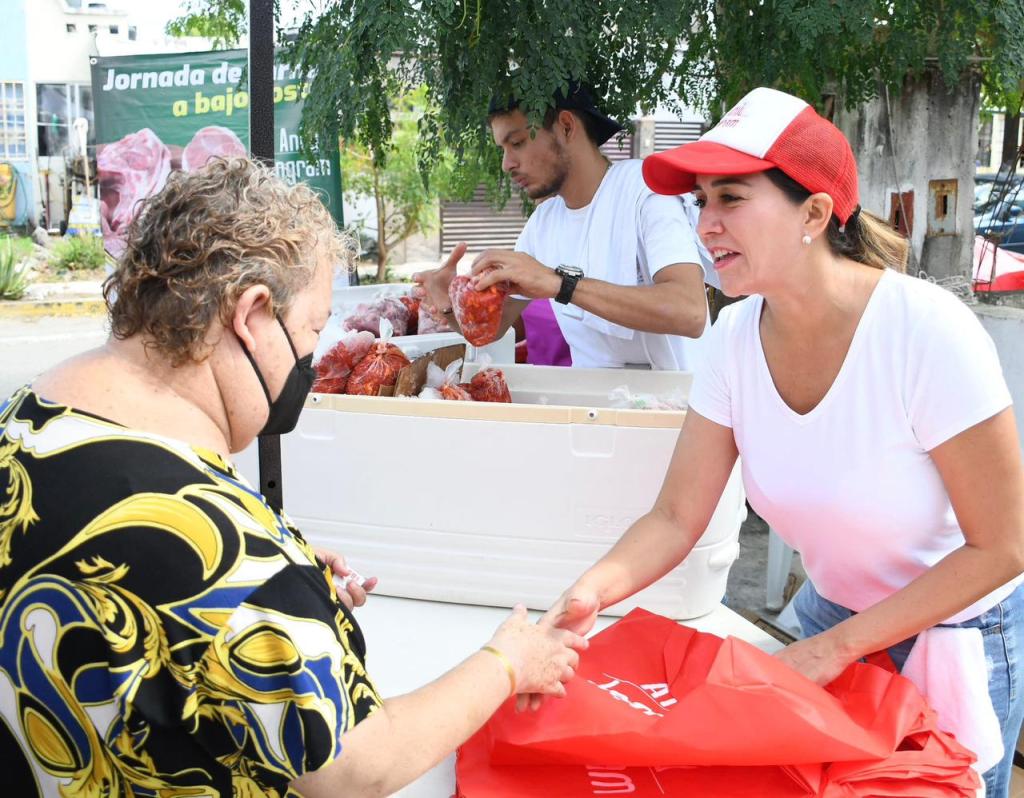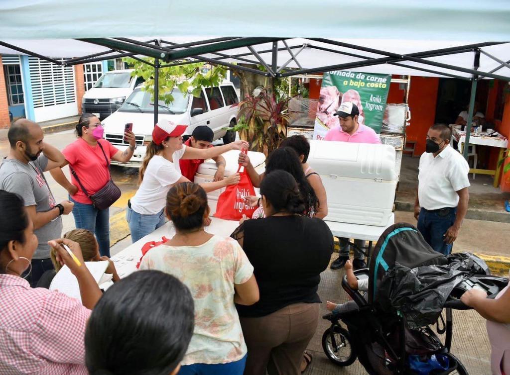 “Con un casi 9% de inflación, que está pegando durísimo en el bolsillo de las familias veracruzanas y mexicanas, estamos acercando las jornadas de carne a bajo costo; el kilo de cerdo a 85 pesos y, de res, a 95”, explicó Anilú Ingram.