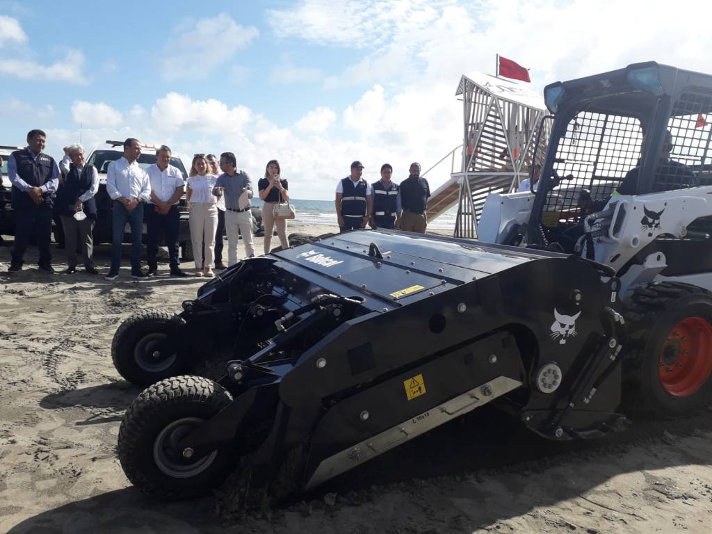 El Alcalde de Boca del Río,Juan Manuel Unánue dio a conocer en la playa La Bamba la nueva máquina «Limpia playas» que estará recorriendo los 12 kilómetros de costa con la que cuenta el municipio.