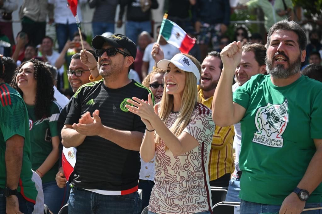 La alcaldesa Paty Lobeira de Yunes se reunió con la afición veracruzana para apoyar a la Selección Mexicana en este primer encuentro contra Polonia.