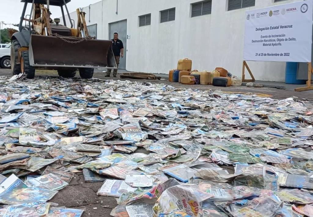 El agente del Ministerio Público de la Fiscalía General de la República (FGR) en Veracruz, en coordinación con el Instituto para Devolver al Pueblo lo Robado (INDEP), realizó la destrucción de 47 mil 050 unidades de piezas apócrifas.