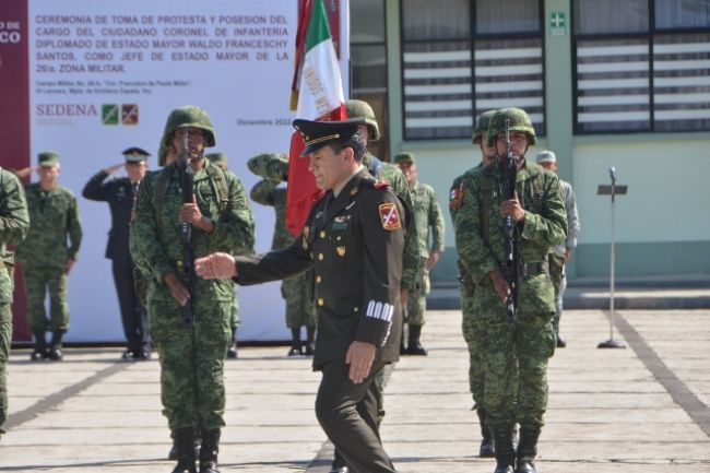 Waldo Franceschy Santos hizo la jura de bandera, como parte de la política de rotación de personal y cargos que lleva a cabo Ejército México y Fuerza Aérea Mexicana como parte de la ruta profesional de sus elementos.