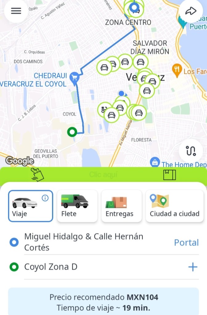Un ejemplo son las tarifas de las dos aplicaciones más utilizadas, un sábado en la noche, desde el centro de Veracruz para los infonavit coyol ,médano y demás colonias de la zona ,la tarifa oscilan entre los 50 y 60 pesos ,pero con este aumento desmedido hasta 100 pesos o más