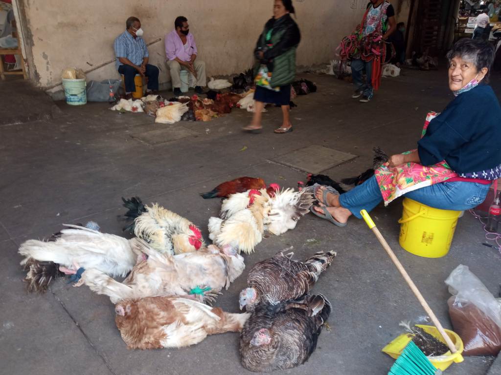 “La crisis esta de la chingada ,la gente no tiene dinero”, dice un hombre que desde el vientre de su madre creció entre la venta de aves para sacrificio, principalmente de personas que de esa manera buscan ahorrarse un poco de dinero.