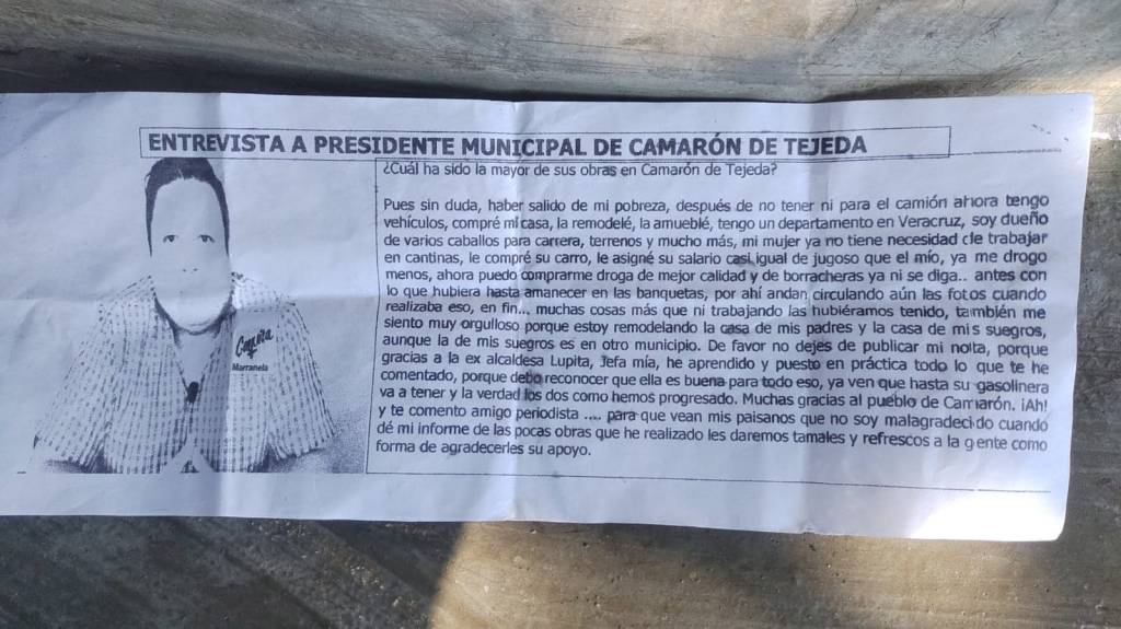 Camarón de Tejeda, Ver.- Días antes del Primer Informe de labores del alcalde de Camarón de Tejeda, Uriel González Alarcón; ciudadanos del municipio, molestos y hartos por los pocos o nulos beneficios prometidos durante su campaña, regalaron volantes publicitarios qué exhiben presunta corrupción de su parte.