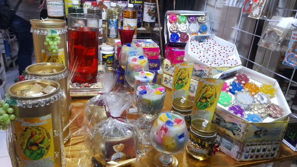 Para ello, algunos recurren a los mercados en busca de amuletos que les llene de buena suerte y bendiciones nos comentó en entrevista Sandra Padilla del local «El divino niño’.