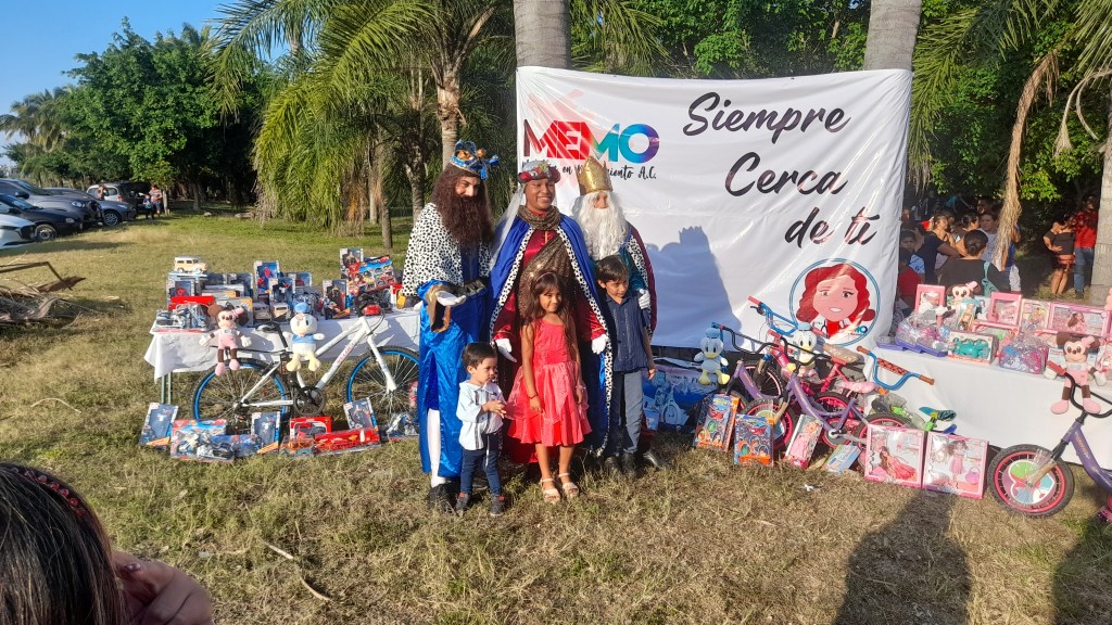 Guillermo Herrada Jiménez de la fundación Memo A.C del municipio de Medellín llevó a los Reyes Magos a Lagos de Puente Moreno para festejar a los niños de la zona.