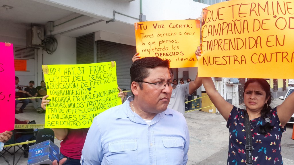 En otra situación los manifestantes pidieron a las autoridades estatales que le cambien su centro de adscripción a una persona que presuntamente se la pasa acosando a los mas de 128 trabajadores de la delegación en la zona conurbada Veracruz-Boca del Río.