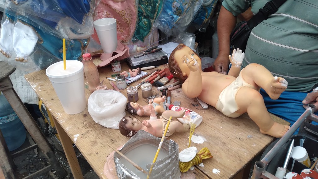 “Desde 1974 nos dedicamos a la venta de ropa de niño Dios,pero la venta han estado muy flojas, apenas hoy como que empezó a repunta, ya que otros años eran mejores, pero tuvimos muchas reparaciones de figuras, la gente tiene sentimientos y no las quieren tirar” Comentó.