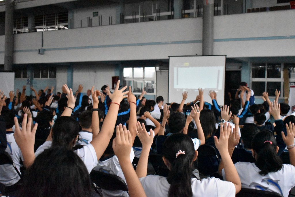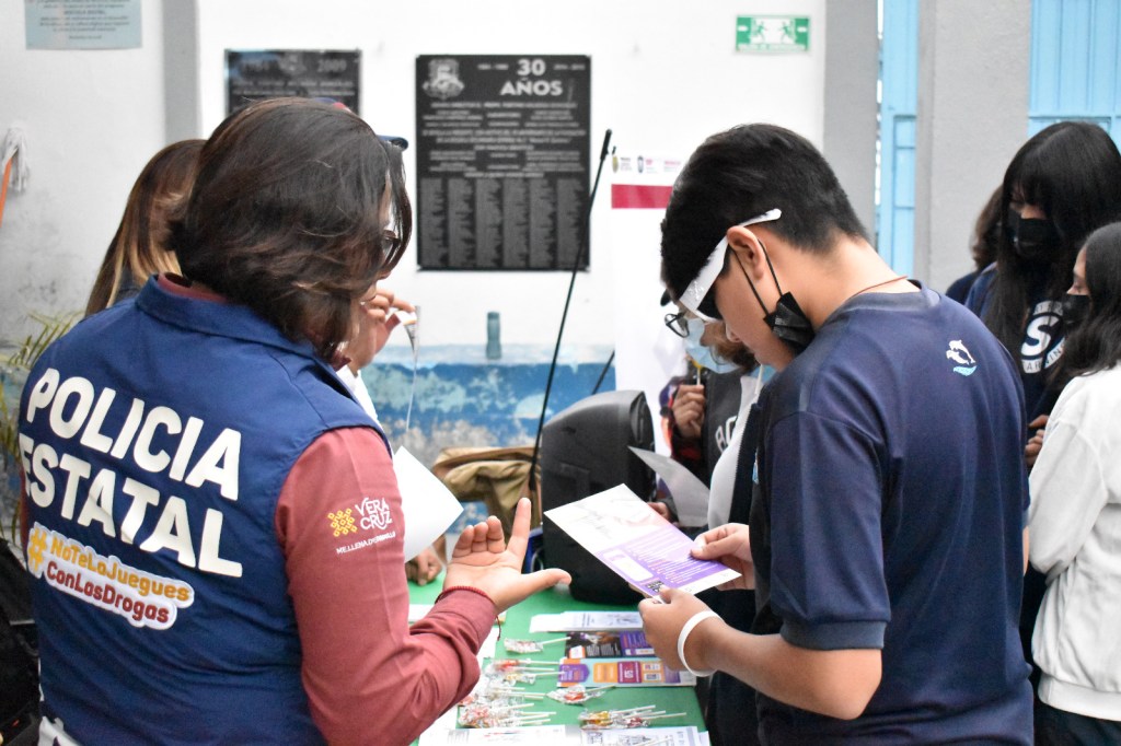 *Xalapa, Ver., 15 de febrero de 2023.-* La Secretaría de Seguridad Pública (SSP) dio a conocer las estrategias de la campaña _No te la juegues con las drogas_ a mil 141 estudiantes y personal docente de la Secundaria General Número 5 Manuel R. Gutiérrez, de esta ciudad, a fin de prevenir la venta y consumo de sustancias adictivas en planteles de educación media y media superior.