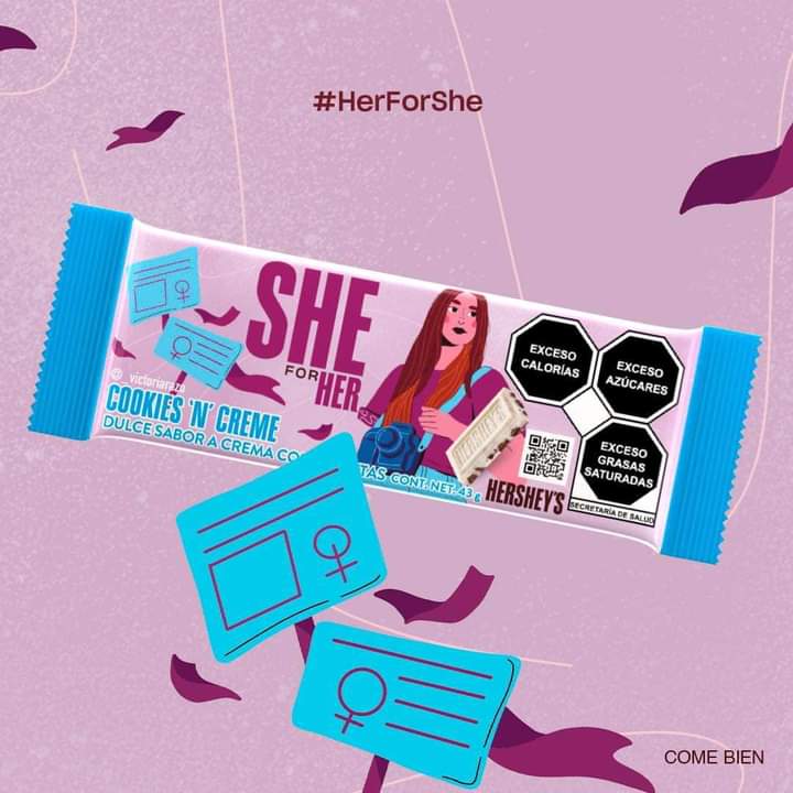 La compañía internacional de chocolates HERSHEY’S escogió a la fotoperiodista veracruzana, Victoria Razo, como una de las imágenes de las nuevas envolturas que se encuentran disponibles a la venta por la campaña «Her For She».