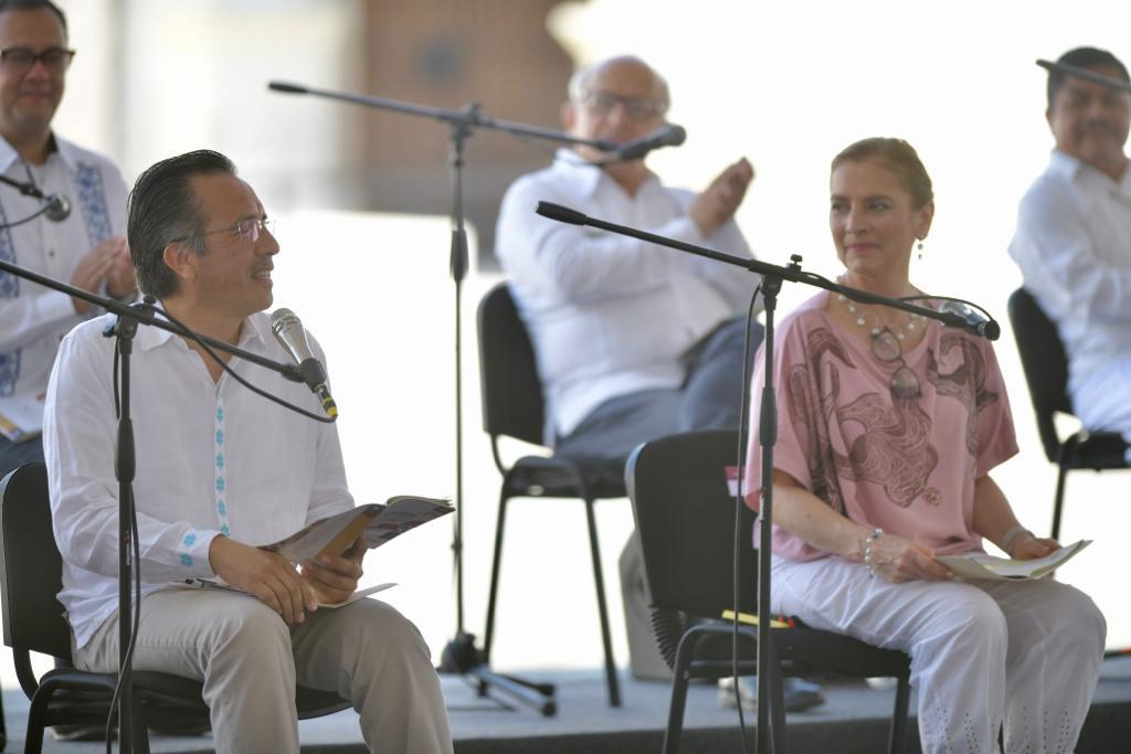 *Veracruz, Ver., 28 de febrero de 2023.-* Mediante las brigadas de Promoción de la Lectura y la Cultura _Mujeres Insurgentes_ y el programa _Español para Todos_, el Gobierno del Estado llegará a mil 200 escuelas para impactar a 117 mil alumnas y alumnos, afirmó el gobernador Cuitláhuac García Jiménez ante la impulsora de la campaña nacional _Fandangos por la Lectura_, Beatriz Gutiérrez Müller.